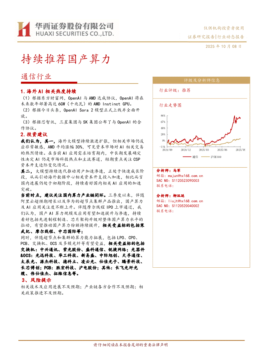 通信行业研报:华西证券-通信行业:持续推荐国产算力-251008