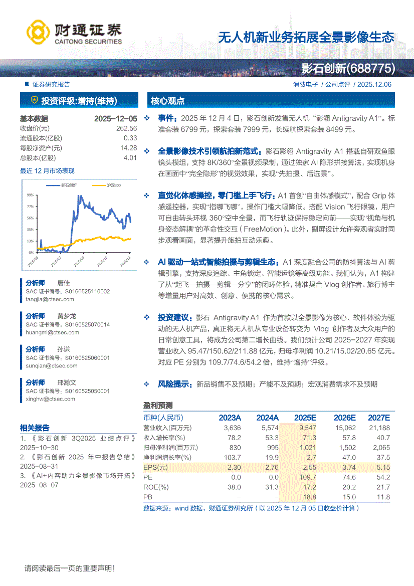 影石创新研报:财通证券-影石创新-688775-无人机新业务拓展全景影像生态-251206