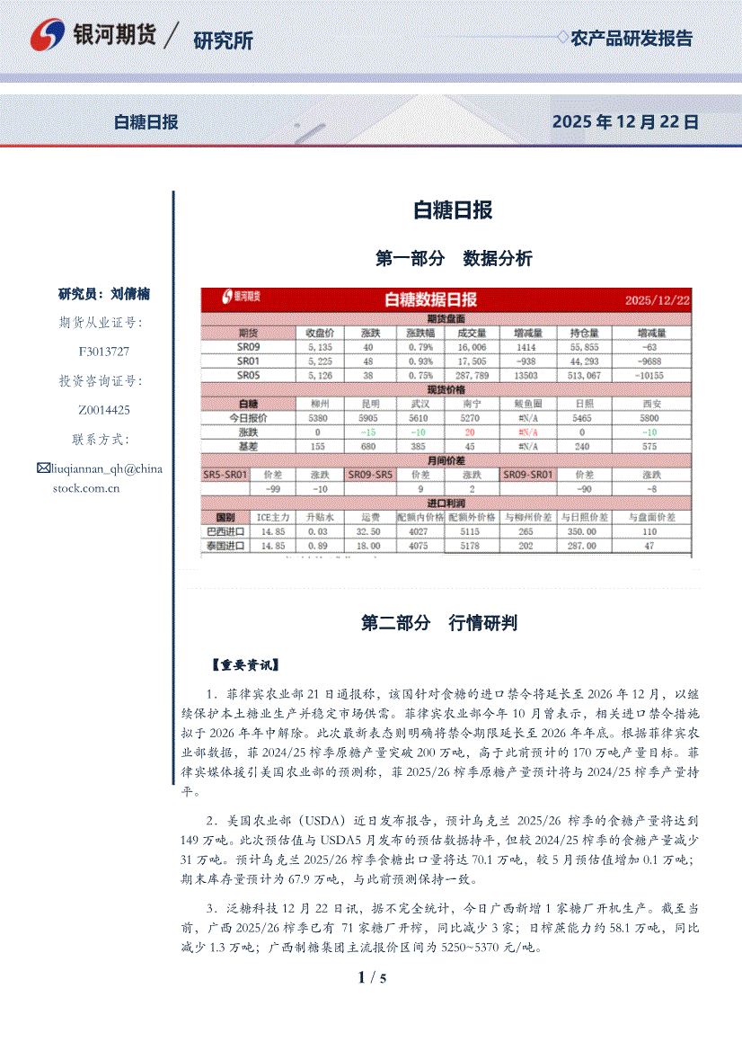 信达期货-软商品周报:市场关注供需前景,白糖承压运行-251207