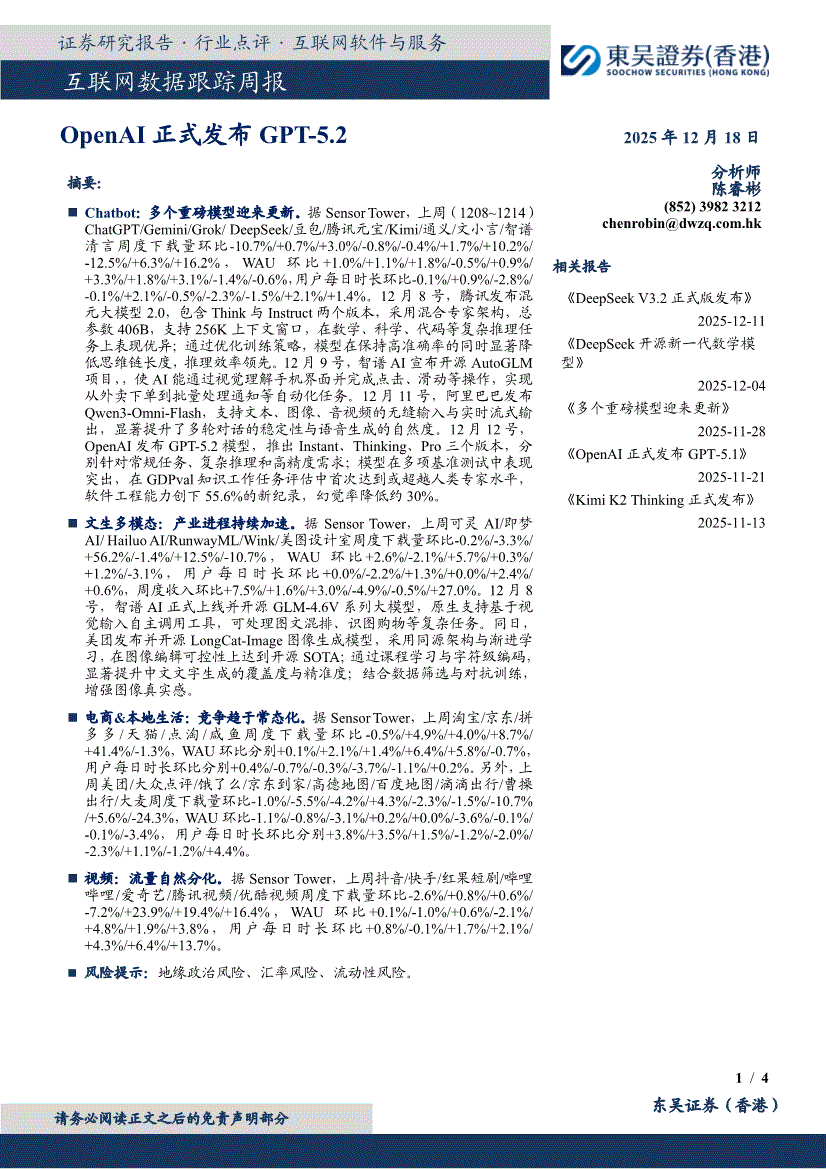 东吴证券(香港)-互联网行业:OpenAI正式发布GPT~5.2-251218