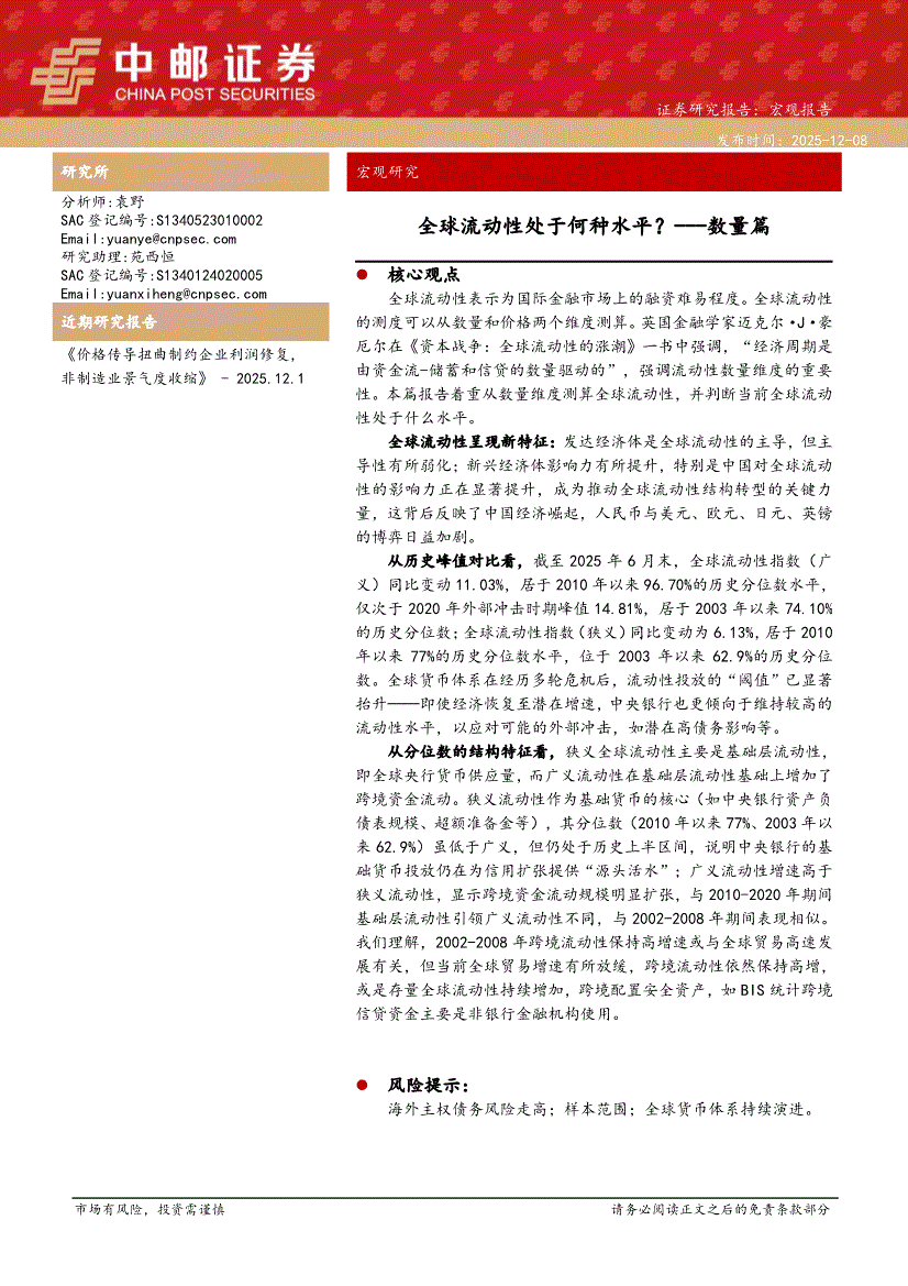 研报:中邮证券-全球流动性处于何种水平?——数量篇-251208