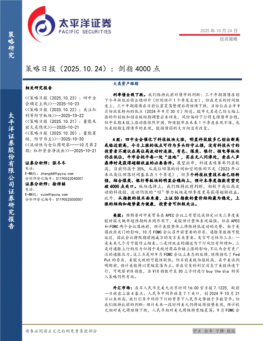 研报:太平洋证券-策略日报:剑指4000点-251024