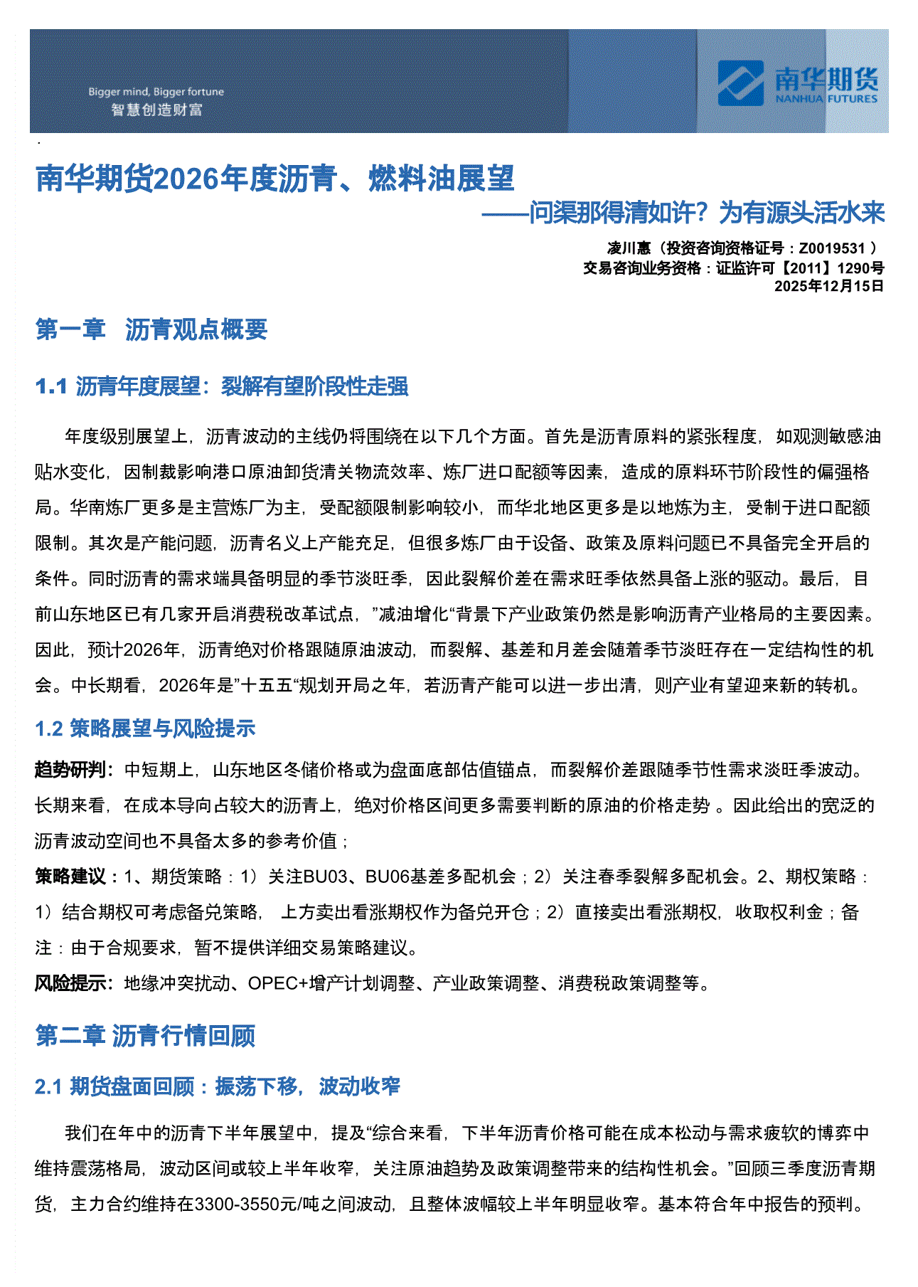 研报:南华期货-2026年度沥青、燃料油展望:问渠那得清如许?为有源头活水来-251215