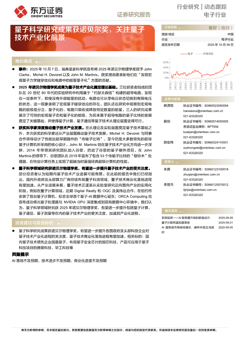 电子行业研报:东方证券-电子行业:量子科学研究成果获诺贝尔奖,关注量子技术产业化前景-251008