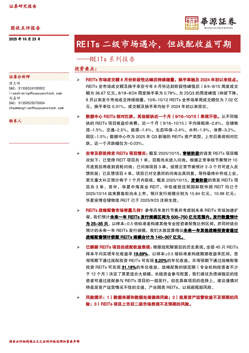 华源证券-REITs系列报告:REITs二级市场遇冷,但战配收益可期-251023