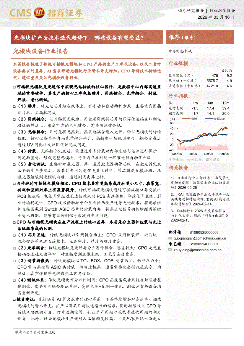光模块设备行业研报:招商证券-光模块设备行业报告:光模块扩产&技术迭代趋势下,哪些设备有望受益?-260316