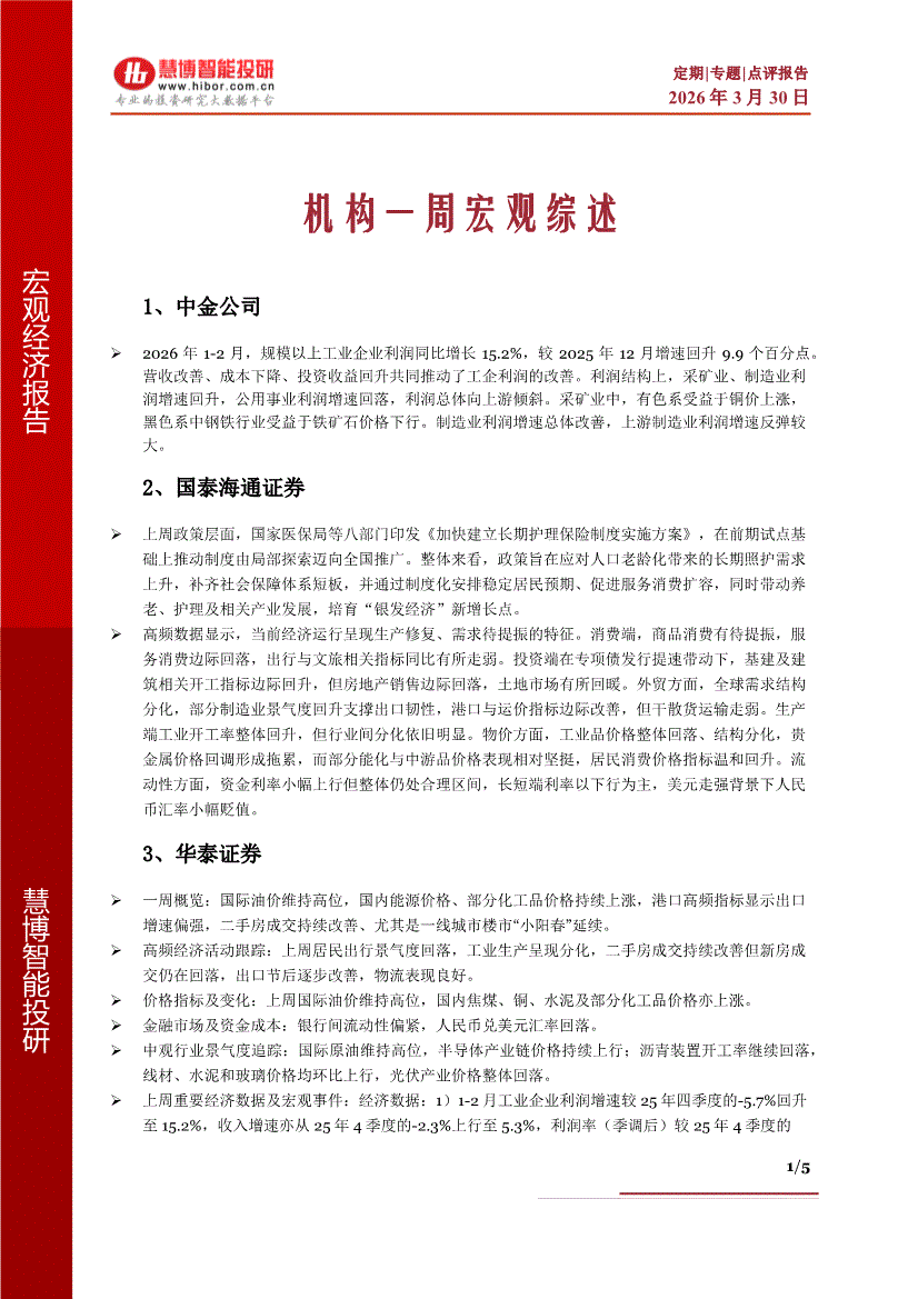 研报:慧博智能投研-机构一周宏观综述-260330