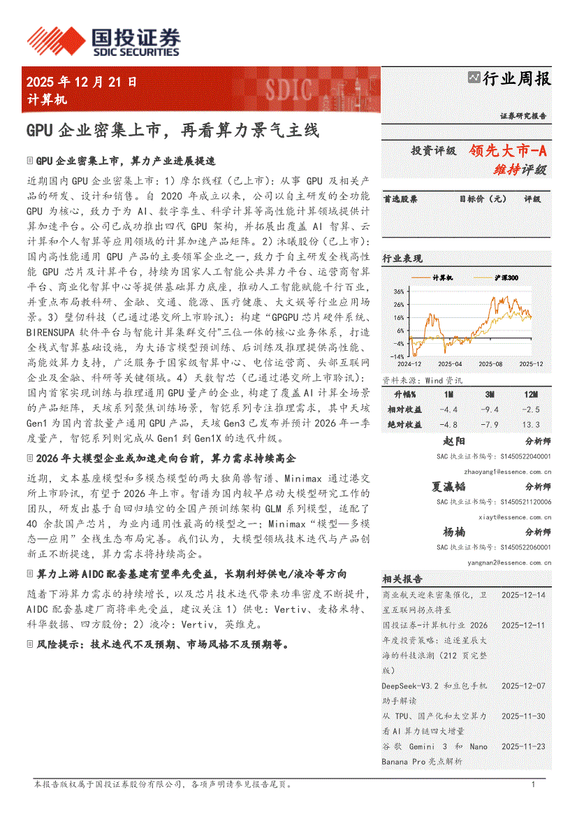 计算机行业研报:国投证券-计算机行业周报:GPU企业密集上市,再看算力景气主线-251221