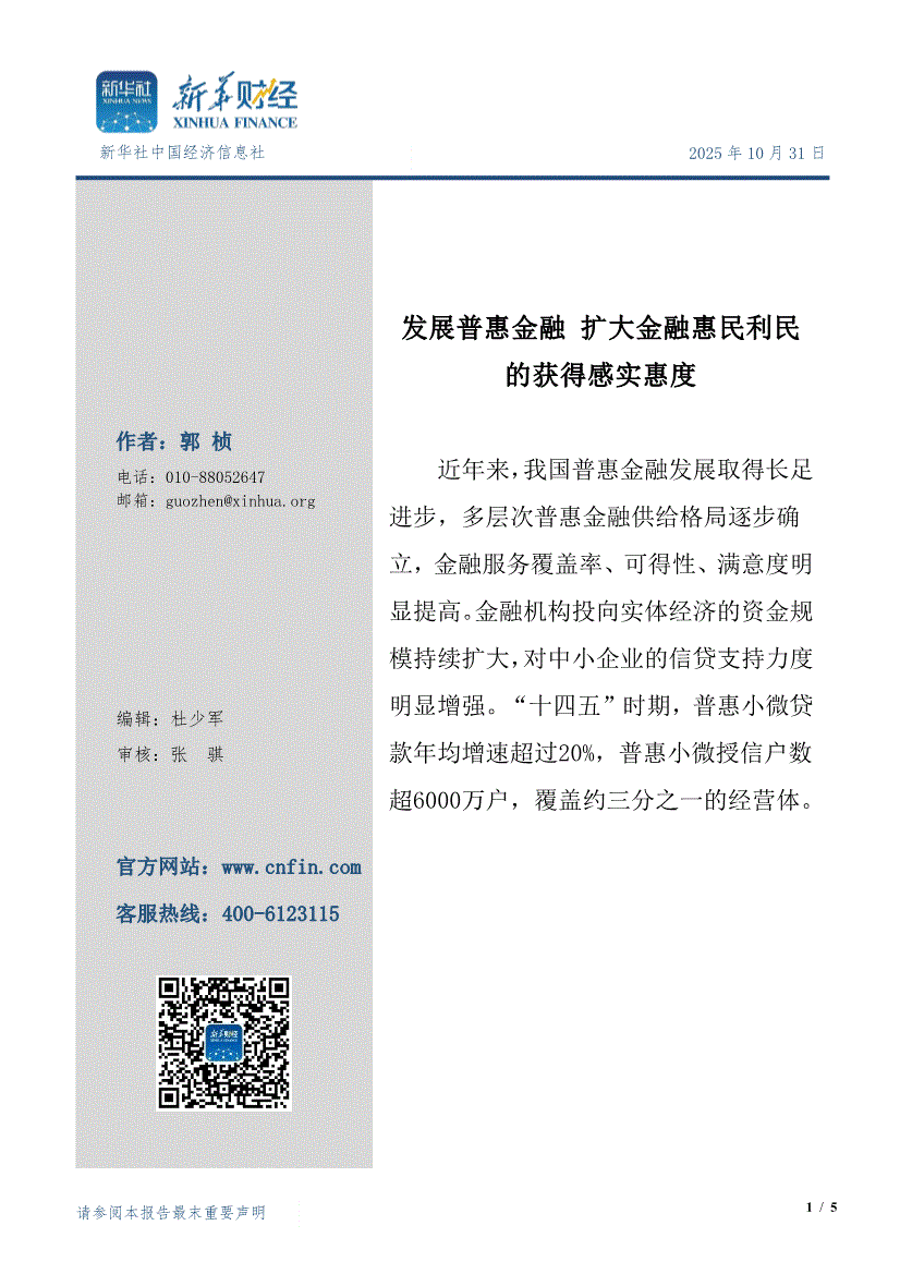 金融行业研报:新华财经-金融行业:发展普惠金融,扩大金融惠民利民的获得感实惠度-251031