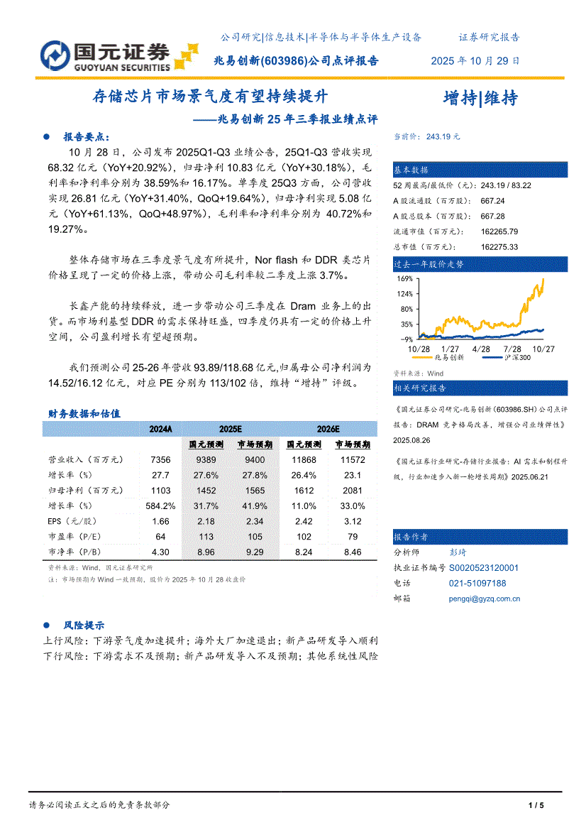 兆易创新研报:国元证券-兆易创新-603986-2025年三季报业绩点评:存储芯片市场景气度有望持续提升-251029