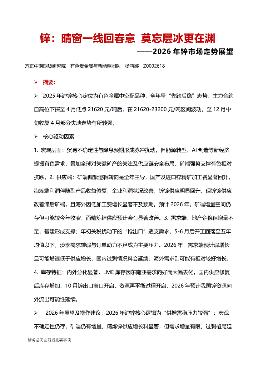 研报:方正中期期货-2026年锌市场走势展望:锌,晴窗一线回春意,莫忘层冰更在渊-251215