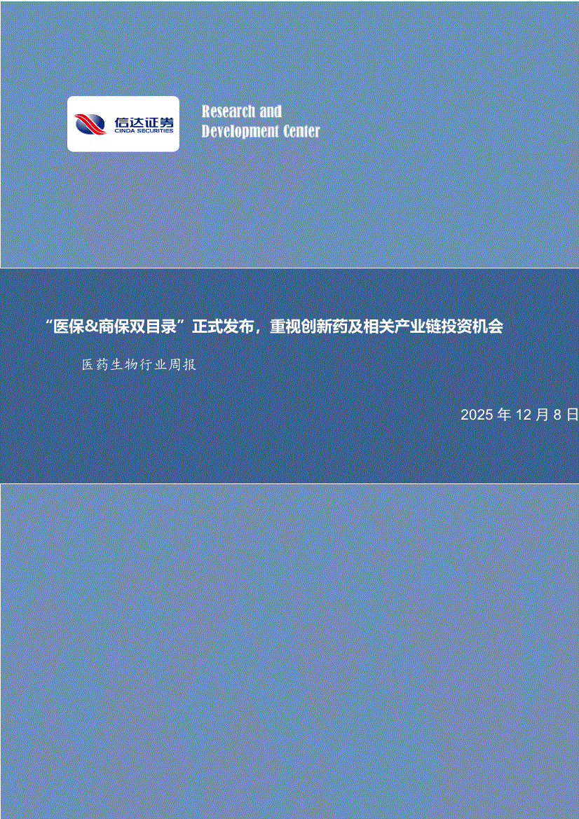 医药生物行业研报:信达证券-医药生物行业周报:“医保&商保双目录”正式发布,重视创新药及相关产业链投资机会-251208