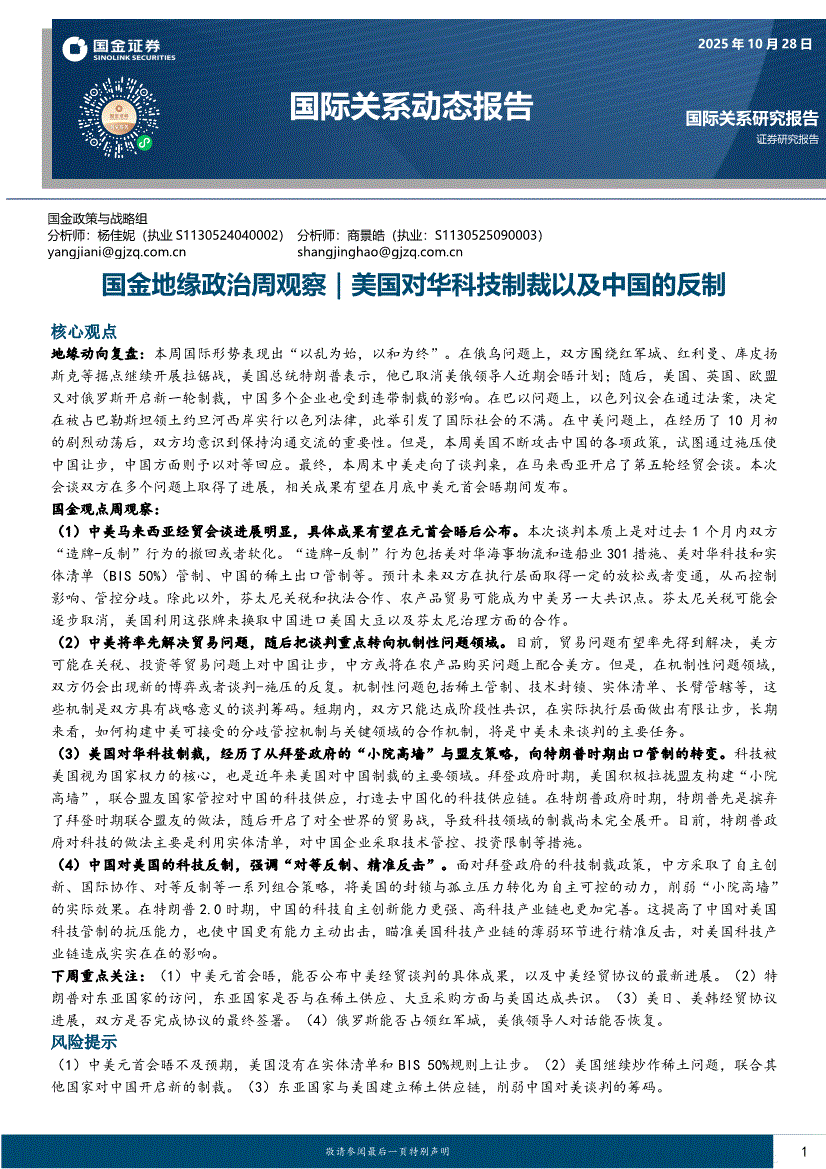 研报:国金证券-国际关系动态报告:国金地缘政治周观察|美国对华科技制裁以及中国的反制-251028