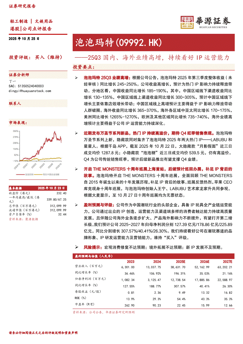 泡泡玛特研报:华源证券-泡泡玛特-9992.HK-25Q3国内、海外业绩高增,持续看好IP运营能力-251025