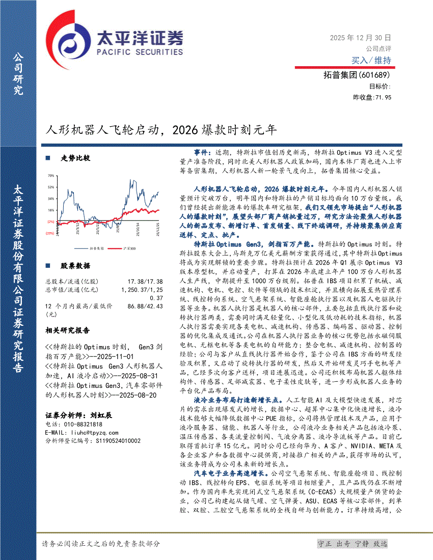 拓普集团研报:太平洋证券-拓普集团-601689-人形机器人飞轮启动,2026爆款时刻元年-251230