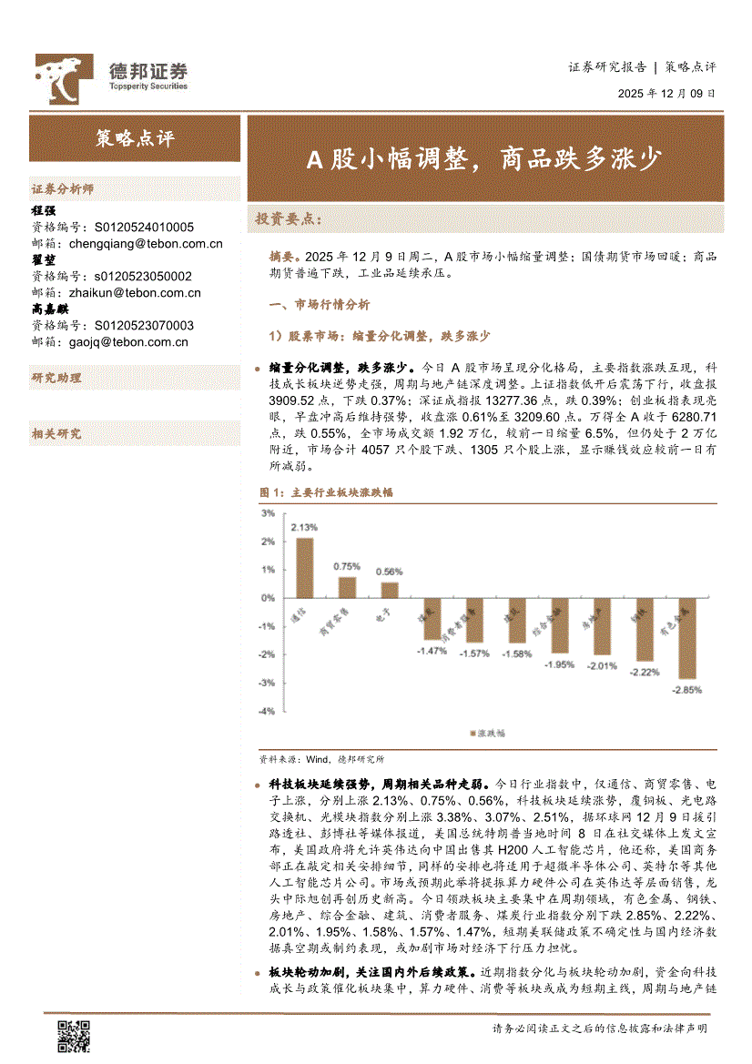 研报:德邦证券-策略点评:A股小幅调整,商品跌多涨少-251209