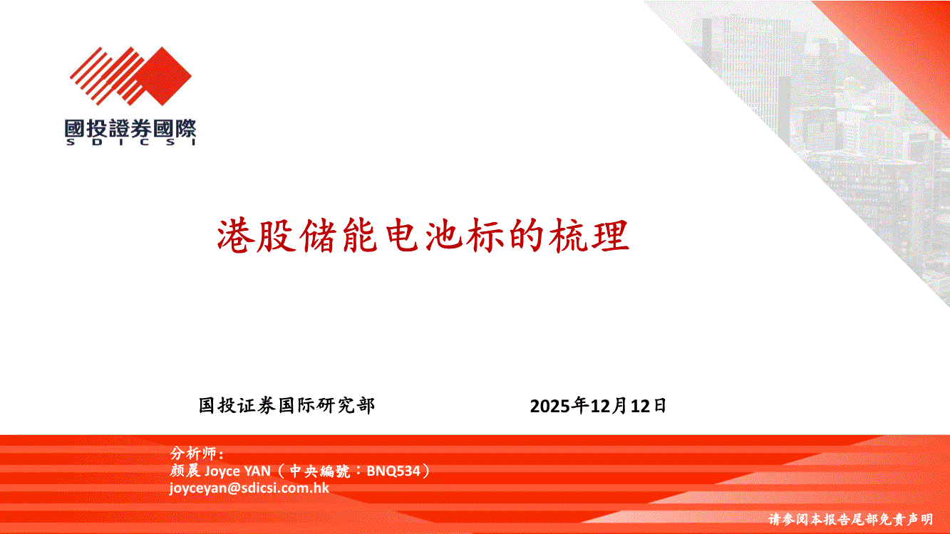 储能电池行业研报:国投证券国际-港股储能电池行业标的梳理-251212