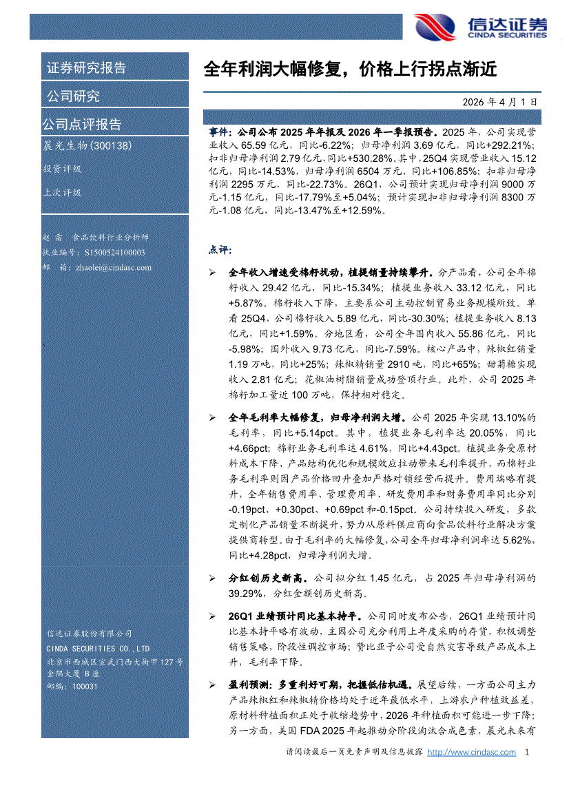 晨光生物研报:信达证券-晨光生物-300138-全年利润大幅修复,价格上行拐点渐近-260401