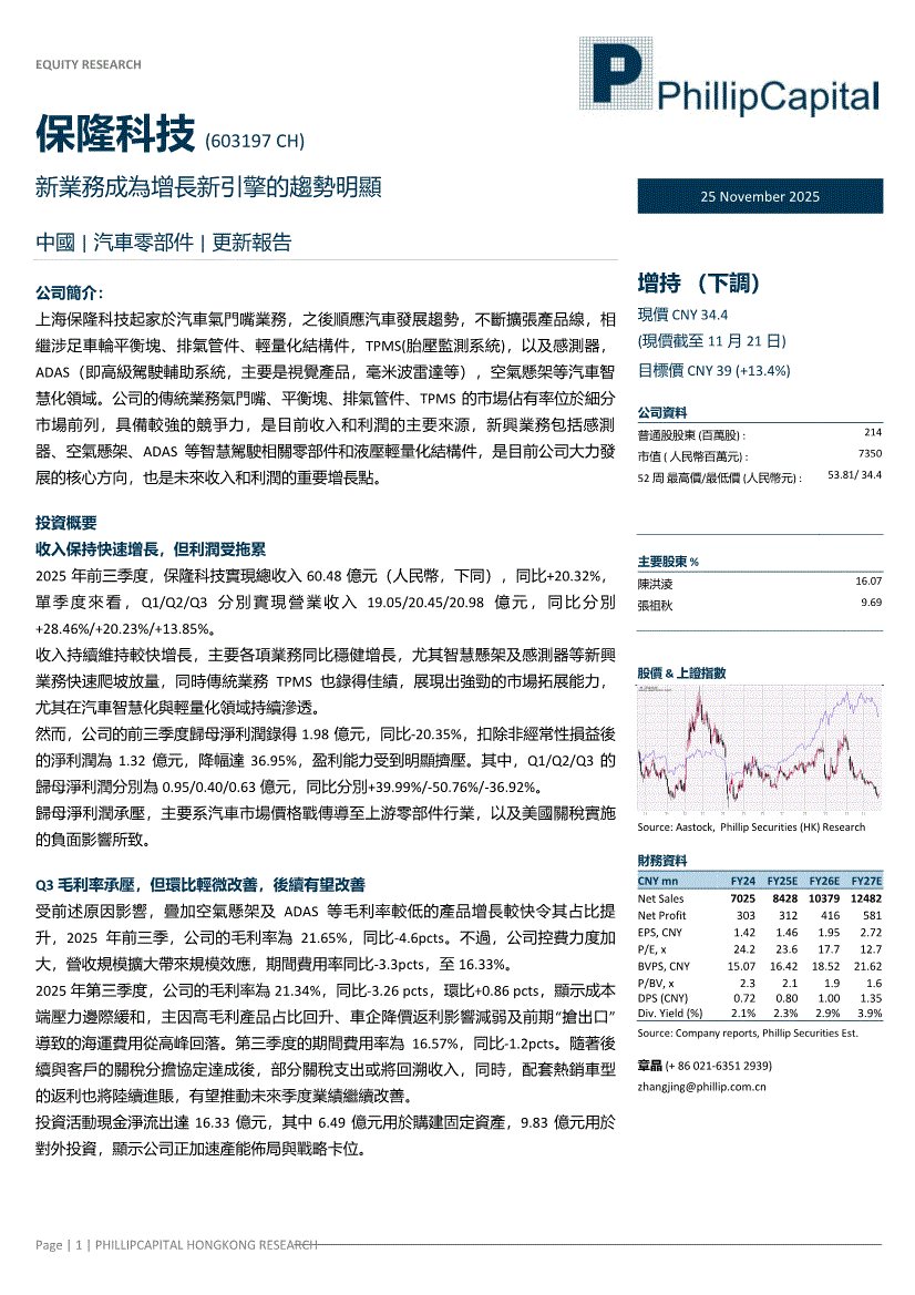 保隆科技研报:辉立证券-保隆科技-603197-新業務成為增長新引擎的趨勢明顯-251125