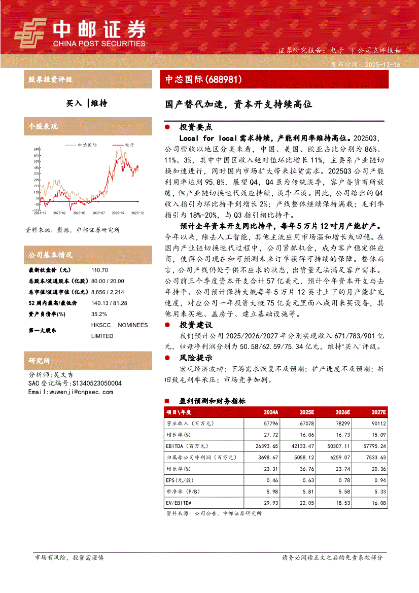 中芯国际研报:中邮证券-中芯国际-688981-国产替代加速,资本开支持续高位-251216