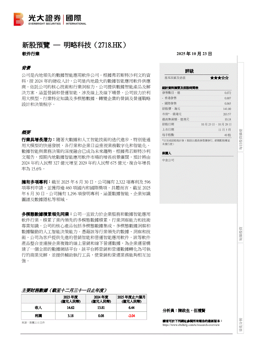 研报:光大证券(国际)-新股預覽─明略科技(2718.HK)-251023